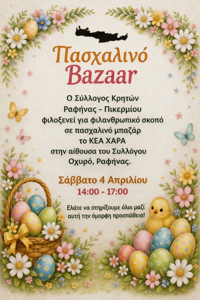 Πασχαλινό Bazaar με σκοπό από τους Κρήτες Ραφήνας – Πικερμίου