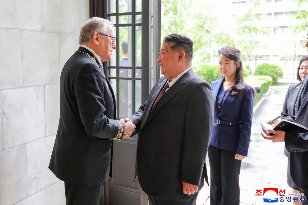 Γνωρίζοντας τον πρεσβευτή της Ρωσίας στην Πιονγιάνγκ Αλεξάντρ Ματσεγκόρα.