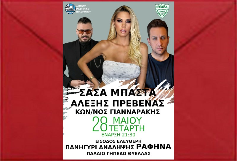 Το καθιερωμένο πανηγύρι της Ανάληψης θα πραγματοποιηθεί την Τετάρτη 28 Μαϊου στο παλιό γήπεδο της Διασταύρωσης Ραφήνας (Θύελλας), με τη γνωστή τραγουδίστρια Σάσα Μπάστα να δίνει το παρών. Το γεγονός συνδιοργανώνουν ο Δήμος Ραφήνας-Πικερμίου και η Θύελλα Ραφήνας, υποσχόμενοι μια βραδιά γεμάτη κέφι και μουσική.