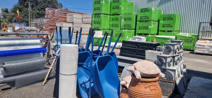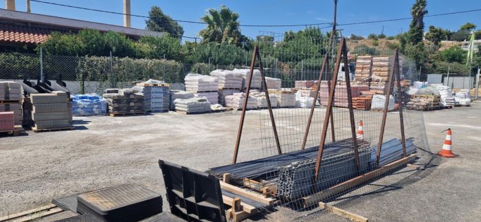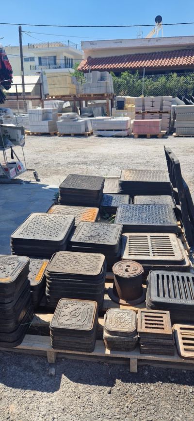 Στη μάντρα θα βρείτε πλάκες πεζοδρομίου, alpha block, μονωτικά υλικά firbran-dow, φελιζόλ, κόλλες πλακιδίων, καθώς και δομικά πλέγματα περιφράξεως. Επιπλέον, υπάρχει μεγάλη ποικιλία σε γυψοσανίδες, πυρότουβλα εισαγωγής, λαμαρίνες επικαλύψεως, τζάκια, φουρνάκια, μπάρμπεκιου, κεραμίδια Χαλκίδος-Πύργου και σωλήνες PVC.