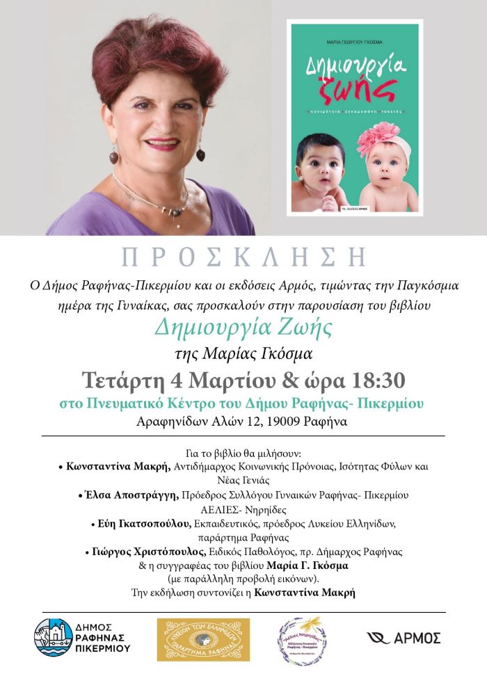 Ραφήνα: Παρουσίαση βιβλίου “Δημιουργία Ζωής” στο Πνευματικό Κέντρο