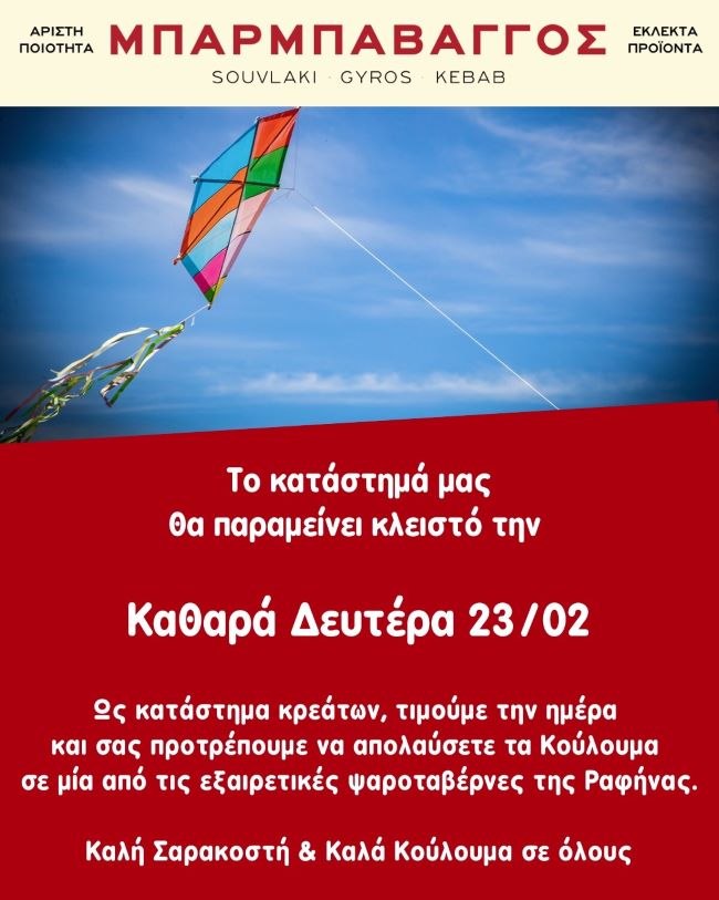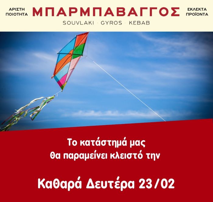Το κατάστημα Μπάρμπα Βάγγος θα παραμείνει κλειστό την Καθαρά Δευτέρα 23/02