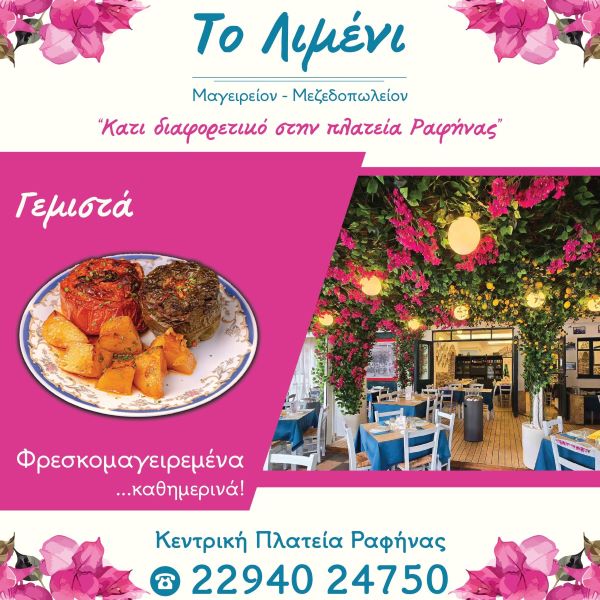 Στην καρδιά της Ραφήνας, στην Κεντρική Πλατεία, μαγειρεύουμε με μεράκι και αγάπη, προσφέροντάς σας φρεσκομαγειρεμένα πιάτα, μυρωδάτους μεζέδες και γεύσεις που σε ταξιδεύουν στα αληθινά μεζεδοκαλοκαίρια της Ελλάδας.