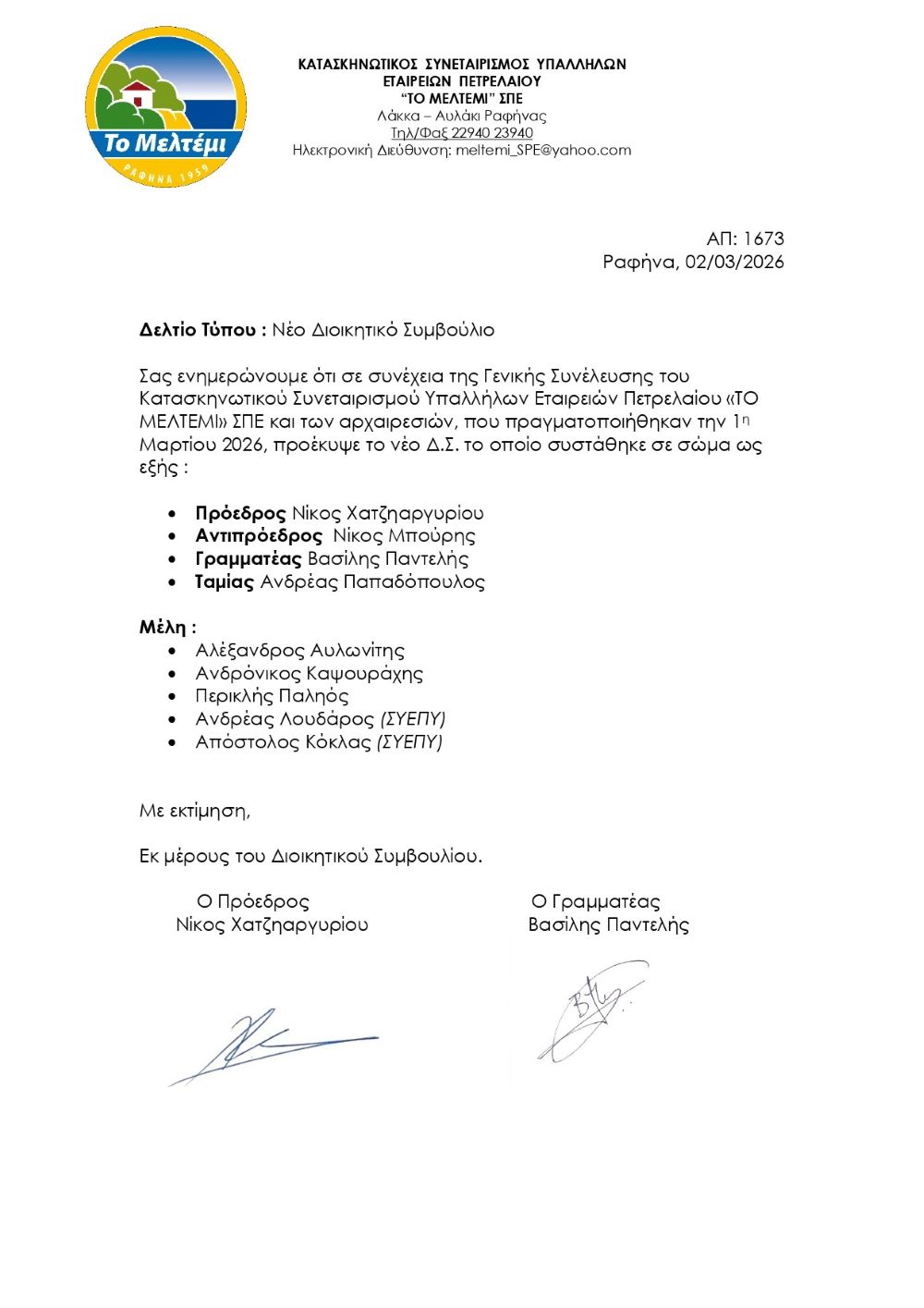 ΡΑΦΗΝΑ - ΠΙΚΕΡΜΙΤΟΠΙΚΑ ΝΕΑΤΟΠΙΚΗ ΚΟΙΝΩΝΙΑ Λιγότερο από 1 λεπταΑνάγνωση Ραφήνα: Το νέο Δ.Σ του συνεταιρισμού ΜΕΛΤΕΜΙ – Πρόεδρος ο Νίκος Χατζηαργυρίου 2 Μαρτίου, 2026 FacebookTwitterPinterestWhatsApp Εξελέγη το νέο ΔΣ του Κατασκηνωτικού Συνεταιρισμού υπαλλήλων εταιρειών πετρελαίου ”Το Μελτέμι” TagsΜΕΛΤΕΜΙ Αυτή την εβδομάδα ΜΑΡΑΘΩΝΑΣ - ΝΕΑ ΜΑΚΡΗ Φάμπρικα Έπιπλα: Κρεβάτια που δεν είναι απλώς για ύπνο. Είναι για ζωή 2 Μαρτίου, 2026 0 Φάμπρικα Έπιπλα Εδώ δεν πουλάνε απλώς έπιπλα. Στήνουν σπίτια που... ΡΑΦΗΝΑ - ΠΙΚΕΡΜΙ Δράση καθαρισμού από τον Οργανισμό Λιμένος Ραφήνας με ουσία, συνεργασία και συμμετοχή 2 Μαρτίου, 2026 0 Μια ουσιαστική περιβαλλοντική πρωτοβουλία παίρνει σάρκα και οστά στη... ΔΙΑΦΟΡΑ Εγκλωβισμένη παραμένει η Ομάδα Μπάσκετ του Άρη Θεσσαλονίκης στο Άμπου Ντάμπι 2 Μαρτίου, 2026 0 Εγκλωβισμένη παραμένει η ομάδα μπάσκετ του Άρη Θεσσαλονίκης Κ18... ΕΚΔΗΛΩΣΕΙΣ Μουσείο Μαραθωνίου Δρόμου: Ανάδειξη των Πρεσβευτών Μαραθωνίου ιδεώδους – Απονομή επαίνου στους μαθητές Λυκείου που έσωσαν ηλικιωμένους από πυρκαγιά 2 Μαρτίου, 2026 0 Ο Δήμαρχος Μαραθώνος Στέργιος Τσίρκας, σας προσκαλεί τη Δευτέρα,... ΔΙΑΦΟΡΑ Ανθρωποκτονία στην Ξάνθη μετά από επαναλαμβανόμενες προστριβές για οικονομικές διαφορές 2 Μαρτίου, 2026 0 Ανθρωποκτονία σημειώθηκε στα ορεινά της Ξάνθης το απόγευμα της... ΝΕΑ ΜΑΡΑΘΩΝΑΣ - ΝΕΑ ΜΑΚΡΗ Φάμπρικα Έπιπλα: Κρεβάτια που δεν είναι απλώς για ύπνο. Είναι για ζωή 0 Φάμπρικα Έπιπλα Εδώ δεν πουλάνε απλώς έπιπλα. Στήνουν σπίτια που... ΡΑΦΗΝΑ - ΠΙΚΕΡΜΙ Δράση καθαρισμού από τον Οργανισμό Λιμένος Ραφήνας με ουσία, συνεργασία και συμμετοχή 0 Μια ουσιαστική περιβαλλοντική πρωτοβουλία παίρνει σάρκα και οστά στη... ΔΙΑΦΟΡΑ Εγκλωβισμένη παραμένει η Ομάδα Μπάσκετ του Άρη Θεσσαλονίκης στο Άμπου Ντάμπι 0 Εγκλωβισμένη παραμένει η ομάδα μπάσκετ του Άρη Θεσσαλονίκης Κ18... ΕΚΔΗΛΩΣΕΙΣ Μουσείο Μαραθωνίου Δρόμου: Ανάδειξη των Πρεσβευτών Μαραθωνίου ιδεώδους – Απονομή επαίνου στους μαθητές Λυκείου που έσωσαν ηλικιωμένους από πυρκαγιά 0 Ο Δήμαρχος Μαραθώνος Στέργιος Τσίρκας, σας προσκαλεί τη Δευτέρα,... ΔΙΑΦΟΡΑ Ανθρωποκτονία στην Ξάνθη μετά από επαναλαμβανόμενες προστριβές για οικονομικές διαφορές 0 Ανθρωποκτονία σημειώθηκε στα ορεινά της Ξάνθης το απόγευμα της... ΡΑΦΗΝΑ - ΠΙΚΕΡΜΙ Δημοτική αρχή Τσεβά: Πέρασαν αύξηση 14% στα δημοτικά τέλη με τη συνήθη μέθοδο των ”έγκυρων” ψήφων και τώρα κάνουν τους ανήξερους 0 Καυστικός ο π. αντιδήμαρχος Χρήστος Τσεμπέρης για το καινούργιο... ΡΑΦΗΝΑ - ΠΙΚΕΡΜΙ Ραφήνα Πικέρμι: Ο Κώστας Ξηντάρας για την αύξηση των δημοτικών τελών – ποιοι ψήφισαν υπέρ της αύξησης και ποιοί κατά 0 Η απόλυτη κοροϊδία της δημάρχου και των συνοδοιπόρων Του... ΕΚΔΗΛΩΣΕΙΣ 1η Μαρτίου Παγκόσμια Ημέρα Πολιτικής Προστασίας – Τιμή σ’ εκείνους που βρίσκονται στην πρώτη γραμμή 0 Η 1η Μαρτίου έχει καθιερωθεί ως Παγκόσμια Ημέρα Πολιτικής... RPN.GR Φάμπρικα Έπιπλα: Κρεβάτια που δεν είναι απλώς για ύπνο. Είναι για ζωή ΜΑΡΑΘΩΝΑΣ - ΝΕΑ ΜΑΚΡΗ 2 Μαρτίου, 2026 Δράση καθαρισμού από τον Οργανισμό Λιμένος Ραφήνας με ουσία, συνεργασία και συμμετοχή ΡΑΦΗΝΑ - ΠΙΚΕΡΜΙ 2 Μαρτίου, 2026 Μουσείο Μαραθωνίου Δρόμου: Ανάδειξη των Πρεσβευτών Μαραθωνίου ιδεώδους – Απονομή επαίνου στους μαθητές Λυκείου που έσωσαν ηλικιωμένους από πυρκαγιά ΕΚΔΗΛΩΣΕΙΣ 2 Μαρτίου, 2026 Δημοτική αρχή Τσεβά: Πέρασαν αύξηση 14% στα δημοτικά τέλη με τη συνήθη μέθοδο των ”έγκυρων” ψήφων και τώρα κάνουν τους ανήξερους ΡΑΦΗΝΑ - ΠΙΚΕΡΜΙ 1 Μαρτίου, 2026 Ραφ
