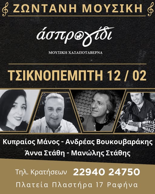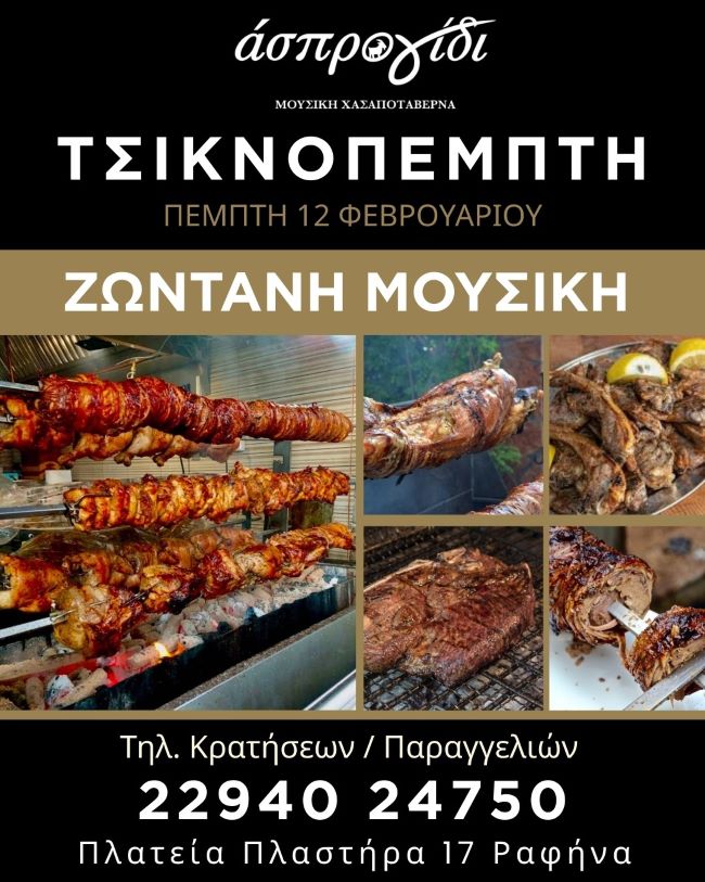 Τσικνοπέμπτη 12 Φεβρουαρίου με καλό φαγητό & με ζωντανή μουσική μόνο στο Άσπρο Γίδι!