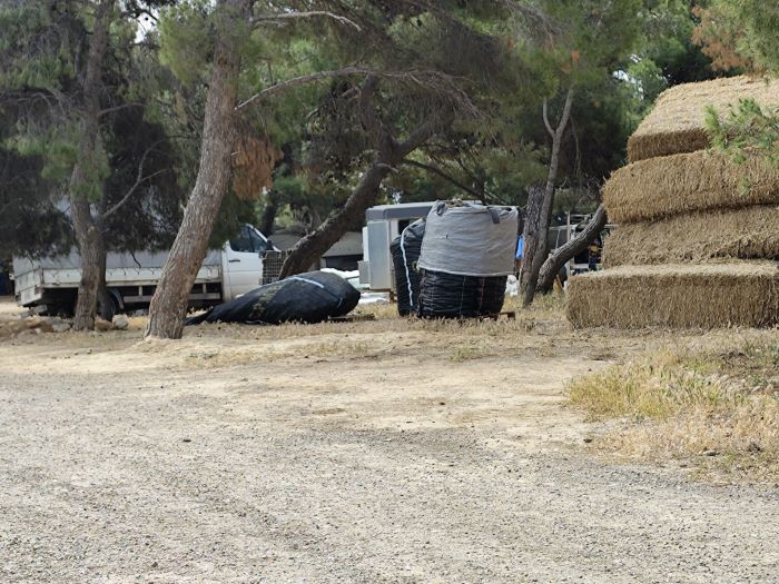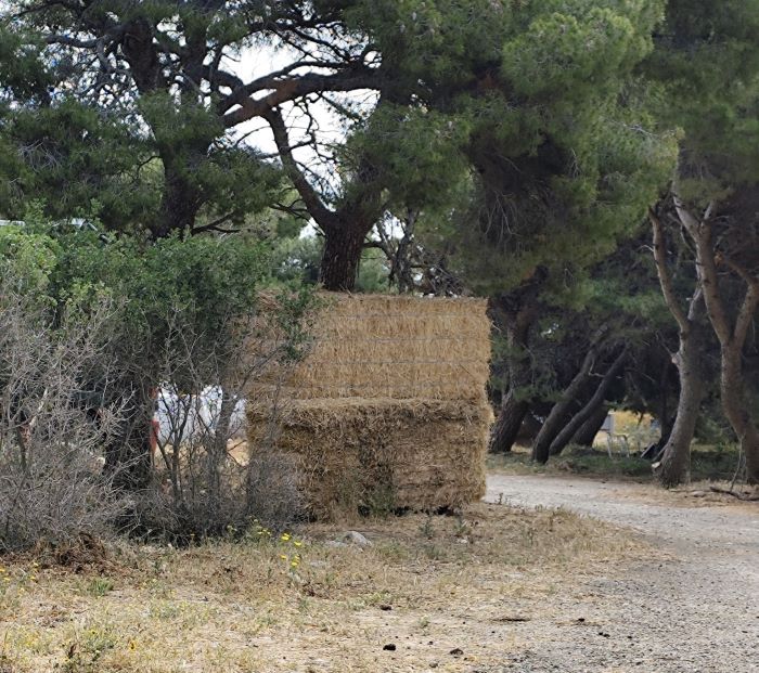 - Σανό και εύφλεκτα υλικά αποθηκευμένα δίπλα στα πεύκα,