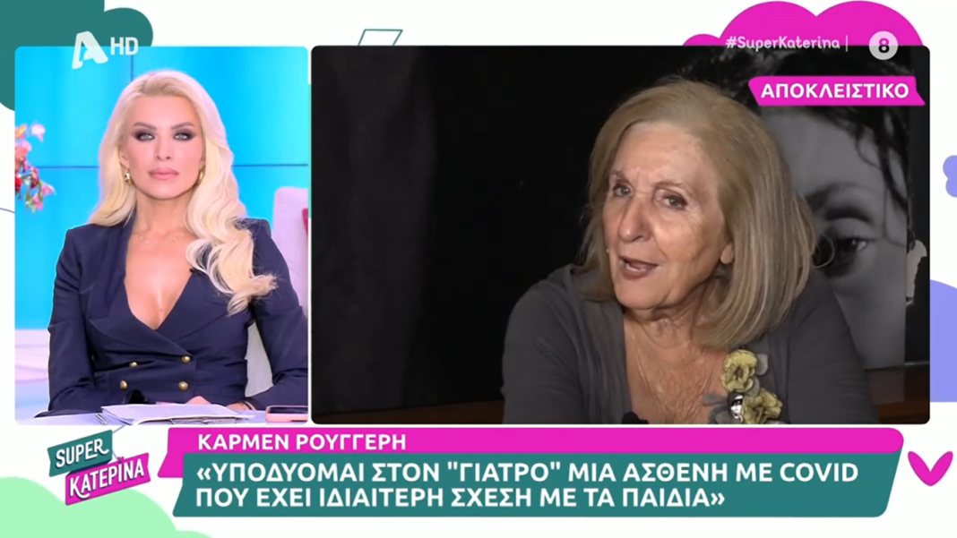 H Κάρμεν Ρουγγέρη παραχώρησε συνέντευξη στην εκπομπή «Super Κατερίνα» και μίλησε στον Γιάννη Πουλόπουλο για το θέατρο, την τηλεόραση, αποκάλυψε την ηλικία της, ενώ σχολίασε για το θέμα που έχει προκύψει το τελευταίο διάστημα σχετικά με το ποιοι μπορούν να εμφανίζονται στο Ηρώδειο.