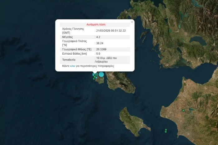 Ισχυρή, αλλά σύντομη σεισμική δόνηση σημειώθηκε νωρίς το πρωί του Σαββάτου 21 Μαρτίου στην περιοχή του Ληξουρίου, στην Κεφαλονιά, προκαλώντας ανησυχία στους κατοίκους.