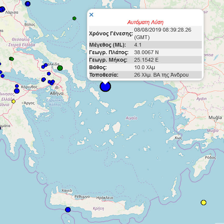 Σεισμός 4,1 Ρίχτερ σημειώθηκε στις 11:39 26χλμ βορειοανατολικά της Άνδρου.
