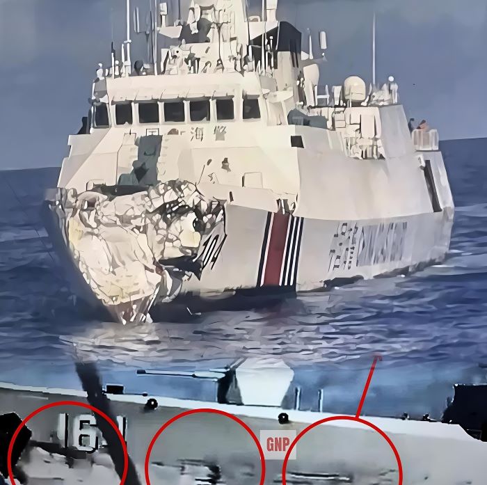 Ύφαλος Σκαρμπορόου, Δυτική Θάλασσα των Φιλιππίνων – Σε ένα σπάνιο και δραματικό ναυτικό περιστατικό, σκάφος της Κινεζικής Ακτοφυλακής συγκρούστηκε με πολεμικό πλοίο του Ναυτικού του Λαϊκού Απελευθερωτικού Στρατού, κατά τη διάρκεια επιθετικής καταδίωξης του περιπολικού BRP Suluan της Φιλιππινέζικης Ακτοφυλακής.