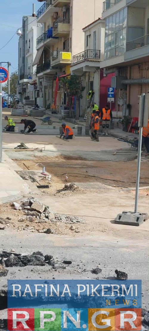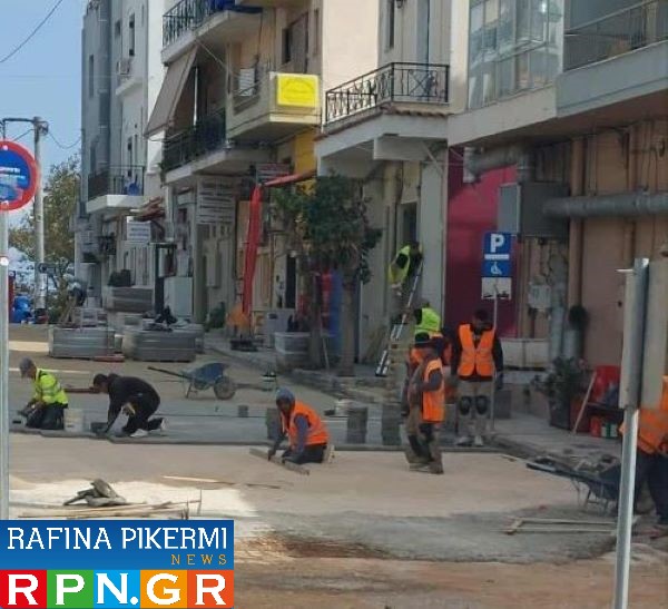 Από νωρίς το πρωί, το κέντρο της Ραφήνας θυμίζει εργοτάξιο. Συνεργεία και εργολάβοι έχουν πιάσει δουλειά στην καθοδo (Εθνικής Αντιστάσεως), προκειμένου να ξεκινήσει η τοποθέτηση κυβόλιθων στο πλαίσιο των έργων αναβάθμισης του οδικού δικτύου.