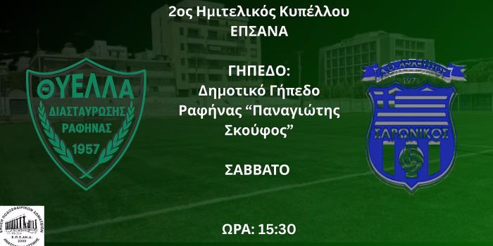 Μπροστά σε μια κρίσιμη αναμέτρηση βρίσκεται η Θύελλα Ραφήνας, η οποία το Σάββατο στις 15:30 υποδέχεται τον Σαρωνικό Αναβύσσου στον δεύτερο ημιτελικό του Κυπέλλου ΕΠΣΑΝΑ, με στόχο την πρόκριση στον μεγάλο τελικό της διοργάνωσης.