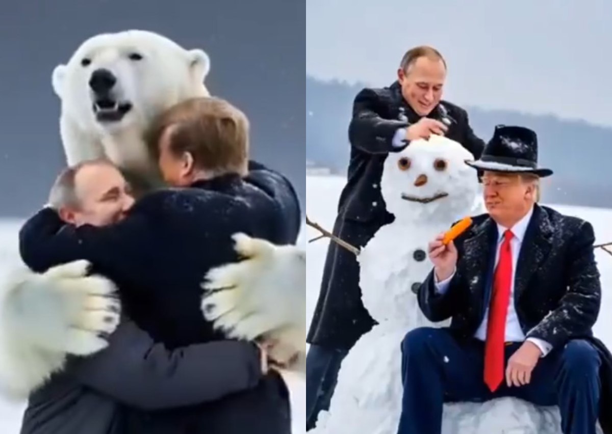 Λίγο πριν τη συνάντηση των δύο ηγετών viral έχει γίνει ένα χιουμοριστικό βίντεο φτιαγμένο με τεχνητή νοημοσύνη. Αυτό δείχνει τους δύο ηγέτες δίπλα-δίπλα, κρατώντας έναν χάρτη και τρέχοντας όταν εμφανίζεται μια αρκούδα που τους κυνηγά.