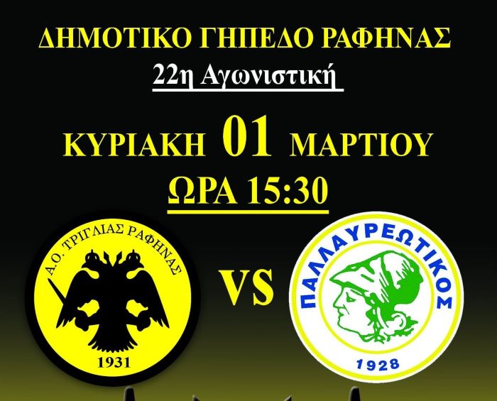 Την Κυριακή 1 Μαρτίου, στις 15.30, το Δημοτικό Γήπεδο Ραφήνας φοράει τα καλά του και ετοιμάζεται για μια μάχη που δεν σηκώνει αδιαφορία.