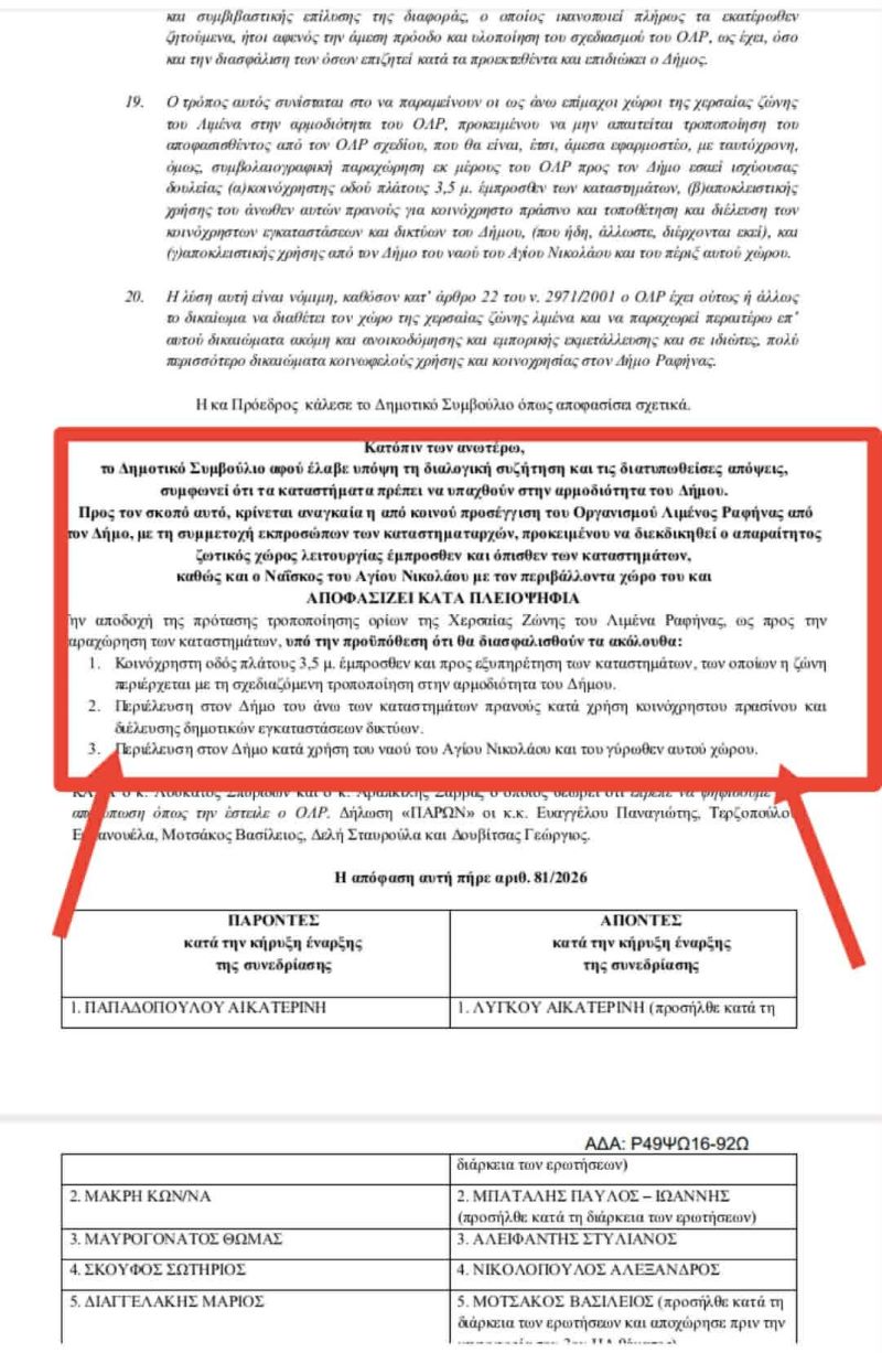 Σημειώνει μεταξύ άλλων ο κος Βασιλόπουλος: “Αντί αυτής της ξεκάθαρης πολιτικής θέσης, η απόφαση που αναρτήθηκε (ΑΔΑ: Ρ49ΨΩ16-92Ω) εμφανίζει μια εντελώς διαφορετική εκδοχή, παρουσιάζοντας δήθεν «αποδοχή υπό προϋποθέσεις» και εισάγοντας όρους που ουδέποτε τέθηκαν ως προϋπόθεση από το Δημοτικό Συμβούλιο.