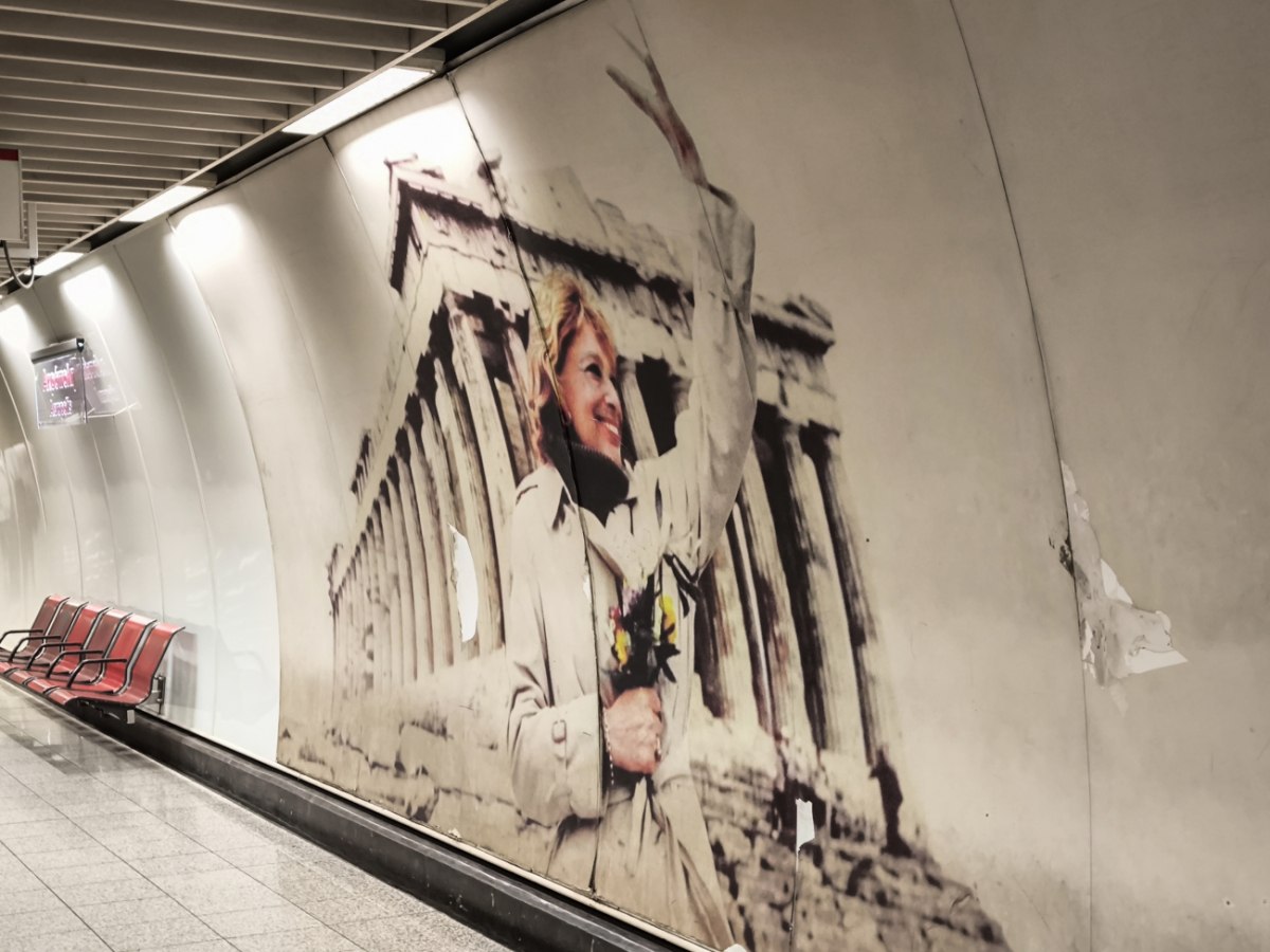 Αγνωστοι προκάλεσαν φθορές στη φωτογραφία της Μελίνας Μερκούρη στην αποβάθρα του σταθμού του Mετρό «Ακρόπολη».