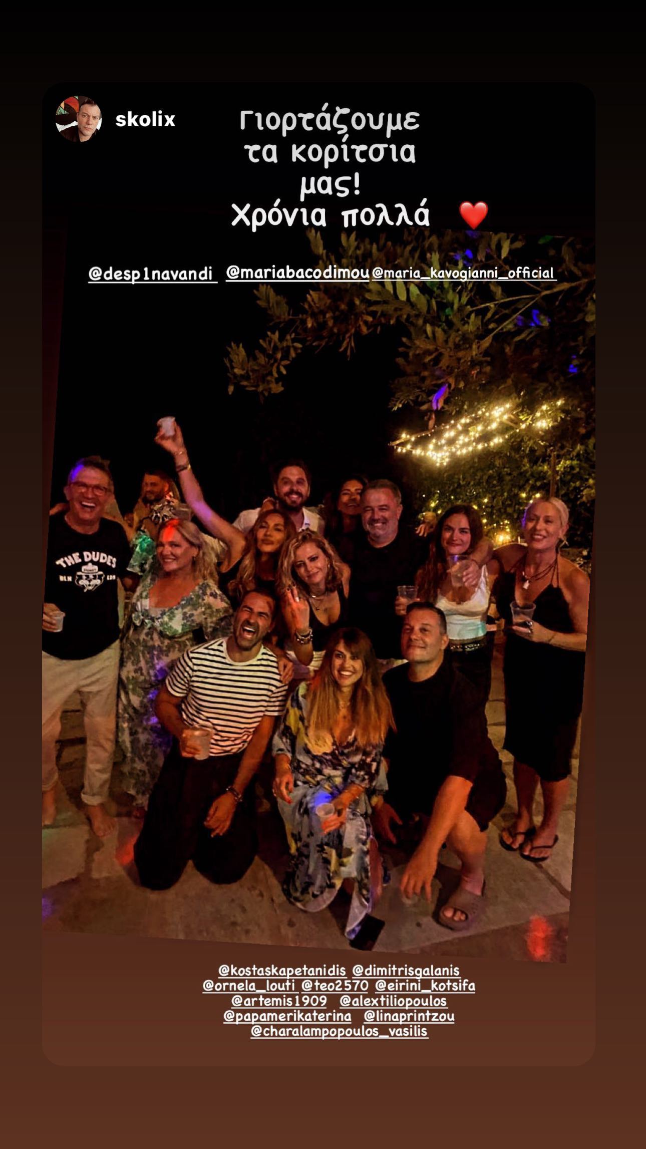Δέσποινα Βανδή, Μαρία Καβογιάννη, Μαρία Μπακοδήμου ήταν οι τρεις εορτάζουσες για τις οποίες τα «έσπασαν» ο Βασίλης Μπισμπίκης, ο Βασίλης Χαραλαμπόπουλος, η σύζυγός του Λίνα Πρίντζου, ο σκηνοθέτης Κώστας Καπετανίδης και λοιπά εκλεκτά αγαπημένα τους πρόσωπα.