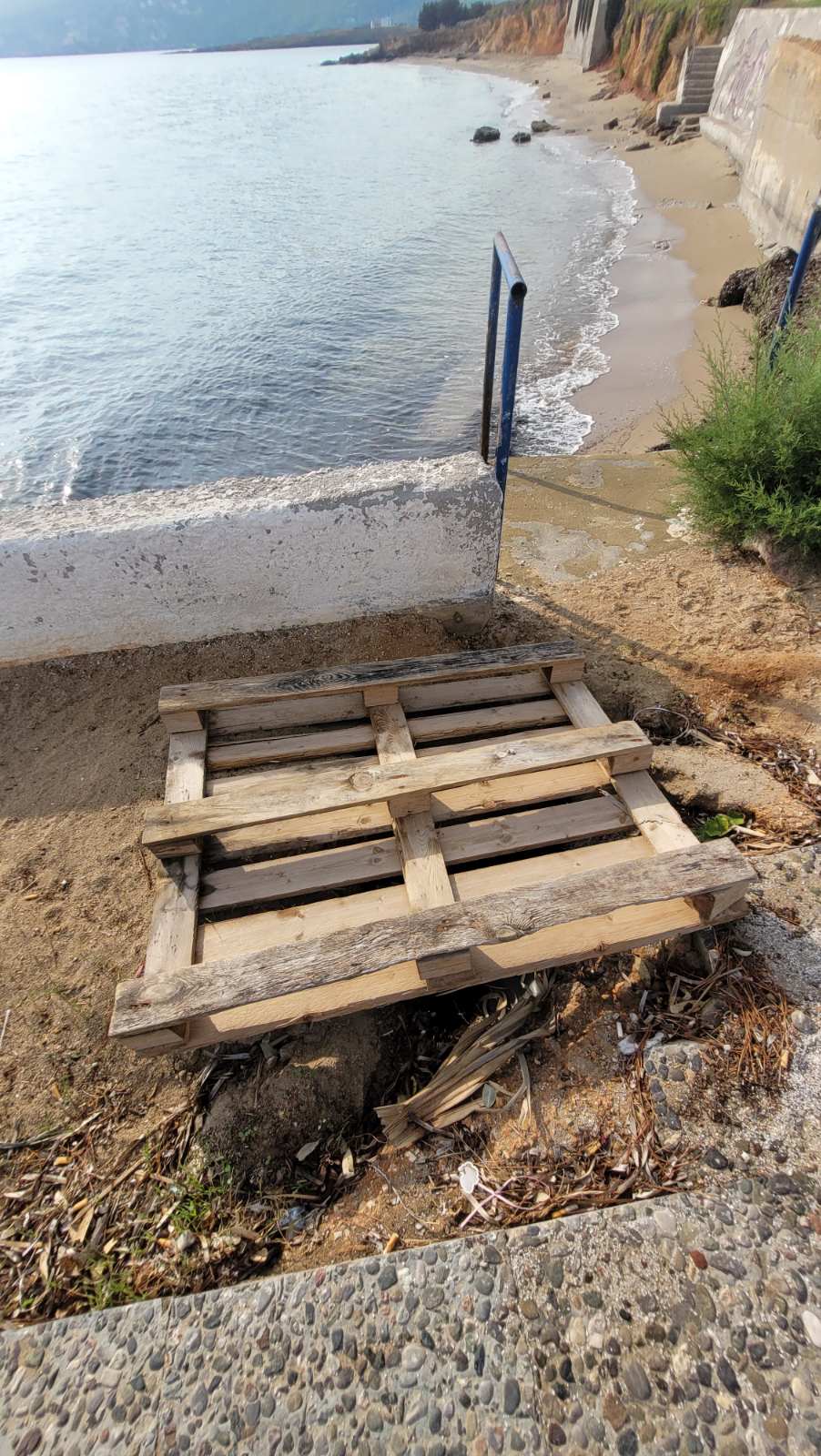 Πίσω όμως από αυτή τη γραφική εικόνα, ένα σοβαρό πρόβλημα ασφάλειας έχει παραμεληθεί για μεγάλο χρονικό διάστημα. Τα τοιχία στήριξης του πεζόδρομου παρουσιάζουν έντονη διάβρωση, ενώ στην πρόσβαση προς την παραλία έχει δημιουργηθεί ένας μεγάλος “κρατήρας” στο υπέδαφος, με αποτέλεσμα το έδαφος να έχει υποχωρήσει και η διέλευση των πολιτών να είναι πλέον ιδιαίτερα επικίνδυνη.