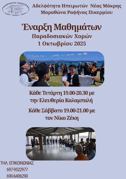 Ξεκινούν τα μαθήματα παραδοσιακών χορών στην Αδελφότητα Ηπειρωτών Νέας Μάκρης – Μαραθώνα – Ραφήνας – Πικερμίου