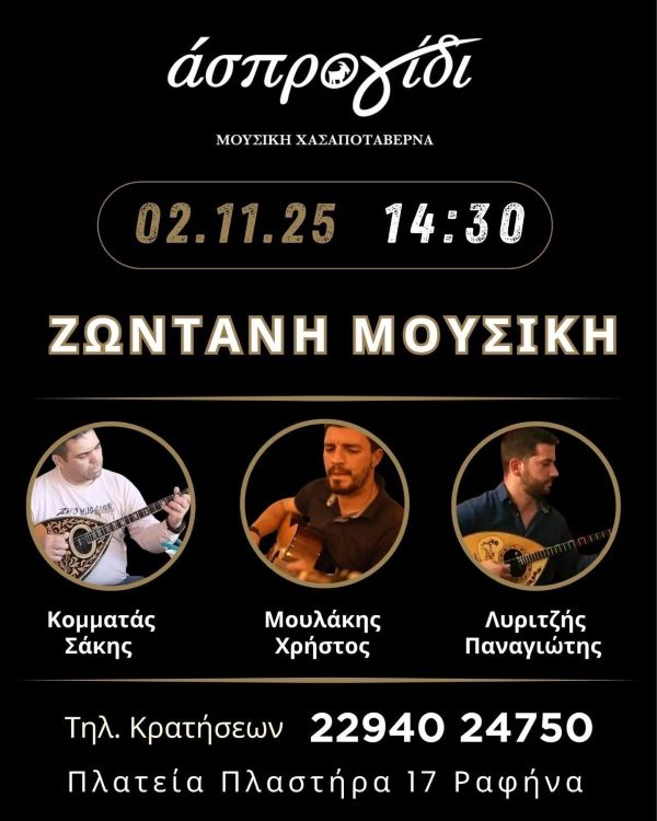 Ζωντανή μουσική στο “Άσπρο Γίδι” στη Ραφήνα, Σάββατο βράδυ και Κυριακή μεσημέρι!