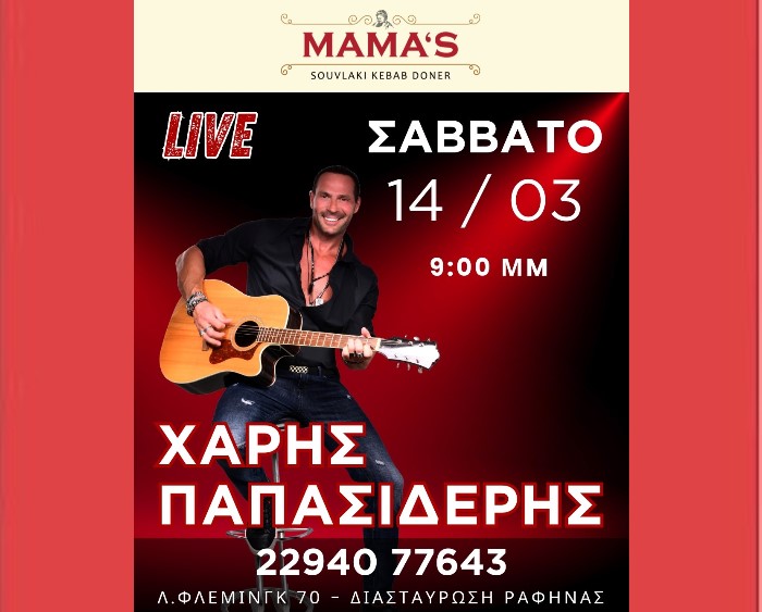 Μια βραδιά γεμάτη μουσική, καλή διάθεση και αγαπημένες γεύσεις ετοιμάζει το Mamas Souvlaki Doner Kebab, προσκαλώντας το κοινό σε μια ξεχωριστή έξοδο το Σάββατο 14 Μαρτίου.